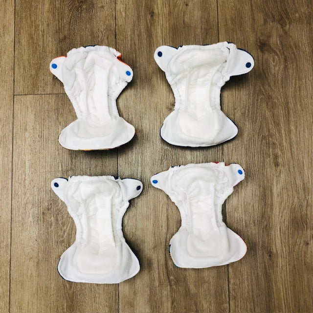 Many of our gently used cloth diapers are returns from our 21-day trial or newborn cloth diaper rental programs, so have been used minimally! For diapers used longer, we only put together the best packages of diapers, from one customer's stash, that are odor-free and often freshly stripped. We include any details about the condition in our descriptions.Â